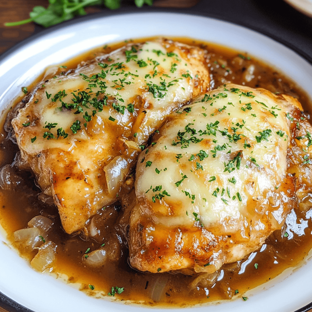 - French Onion Chicken with Lemon: Add a squeeze of fresh lemon juice to the sauce for a zesty brightness that cuts through the richness.