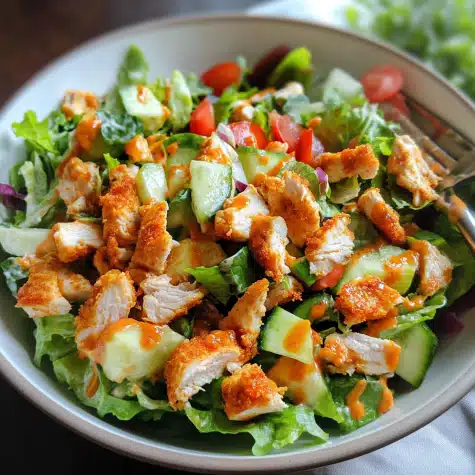 Buffalo Chicken Chopped Salad is a flavorful, healthy dish that brings the heat of Buffalo wings to a light, refreshing salad. With its tender grilled chicken, crisp vegetables, and tangy dressing, it’s a perfect option for anyone craving bold flavors in a healthier format. Whether served as a main dish, a side, or even for meal prep, this salad is sure to be a crowd-pleaser at any table. Try it today, and enjoy the satisfying combination of spicy, creamy, and crunchy in every bite!