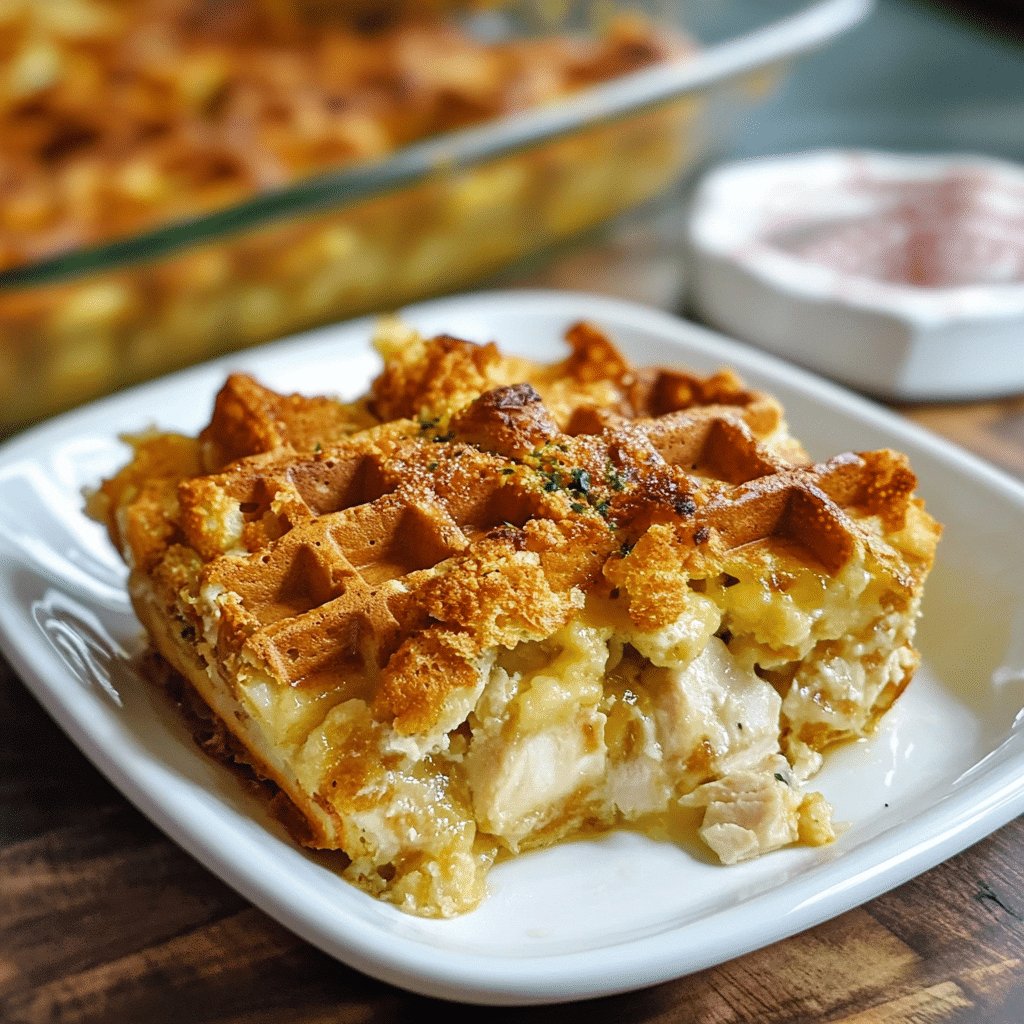 - BBQ Chicken and Waffle Casserole: Replace the regular chicken with shredded BBQ chicken for a smoky, tangy version. Serve with extra BBQ sauce on the side.