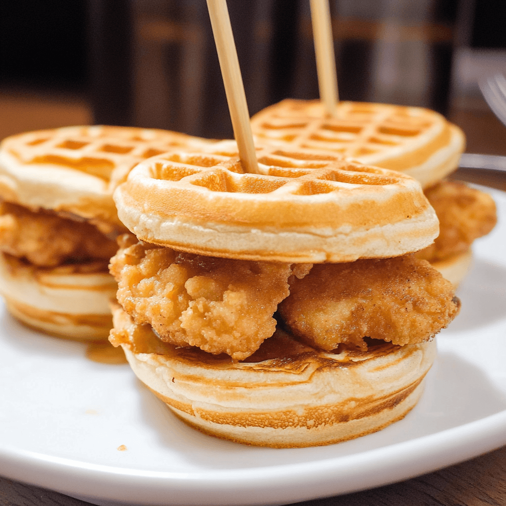- BBQ Chicken and Waffle Sliders: Replace the syrup with your favorite BBQ sauce for a smoky-sweet twist on the classic.
