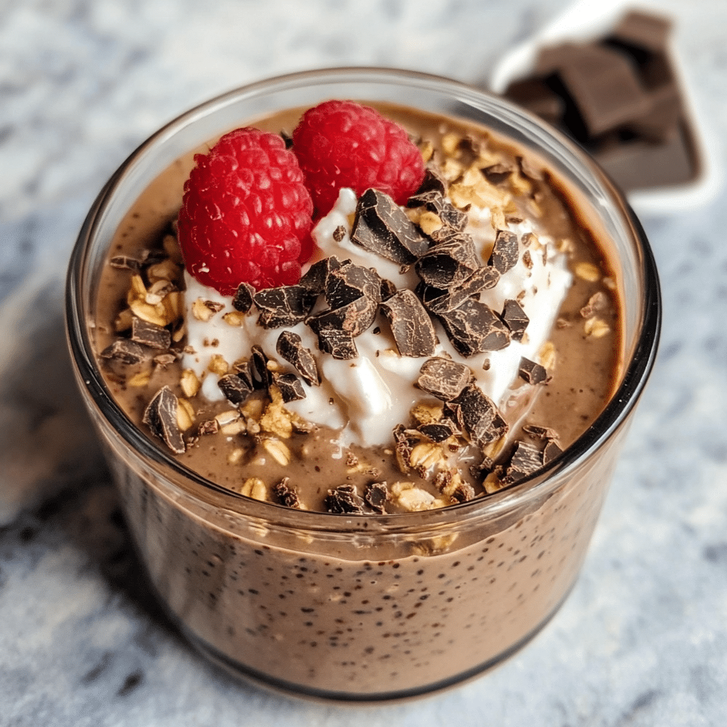 Chocolate Chia Overnight Oats are a rich and creamy breakfast option that combines the smoothness of oats with the indulgent flavor of chocolate. Made by mixing rolled oats, chia seeds, milk (or plant-based alternative), and a touch of cocoa powder or melted chocolate, this nutritious dish is left to soak overnight in the fridge. The chia seeds absorb the liquid, creating a pudding-like consistency that’s both filling and satisfying. You can top it off with fresh berries, nuts, or a drizzle of honey for added sweetness and crunch. Perfect for a quick, healthy breakfast or snack, it’s full of fiber, protein, and antioxidants, making it both delicious and nourishing!