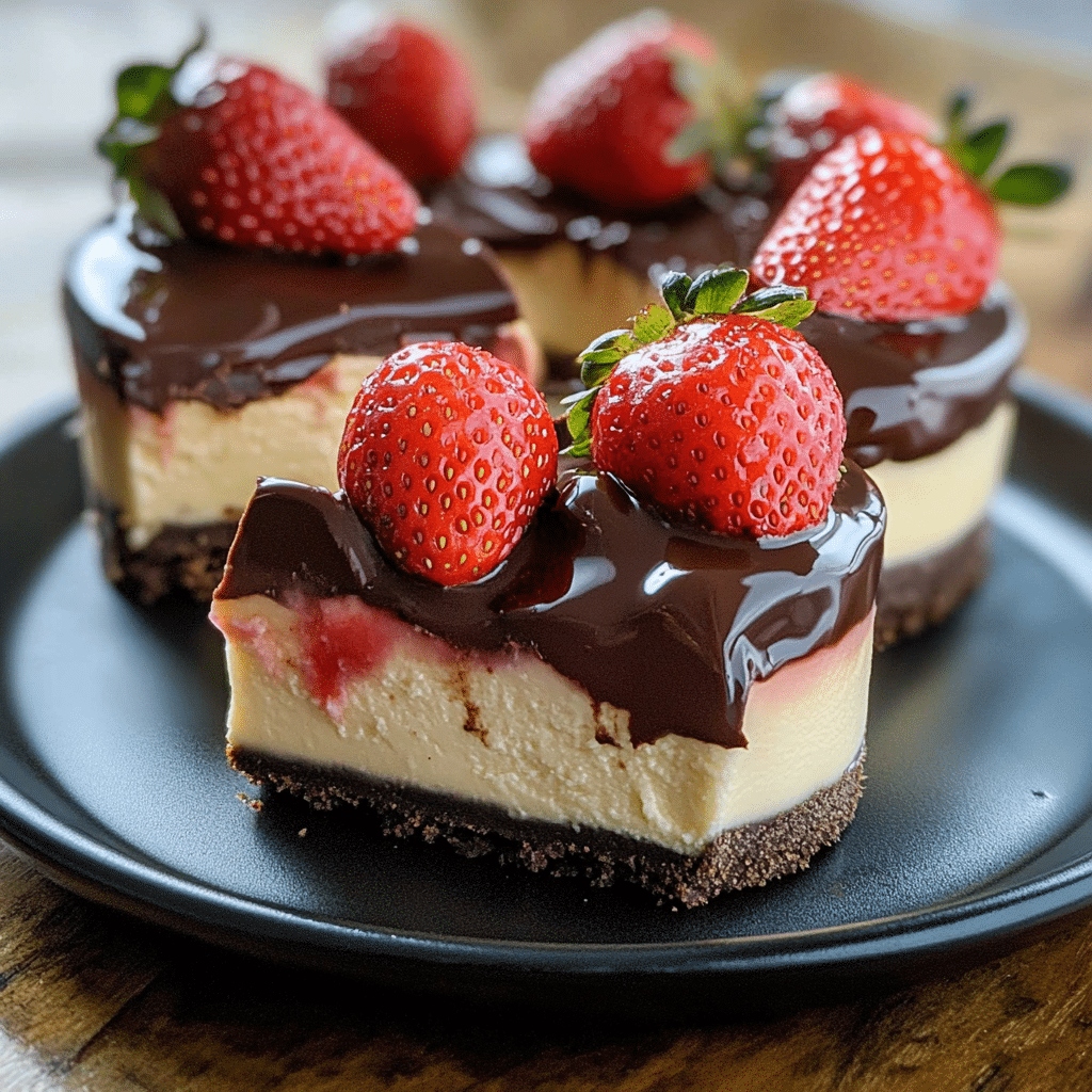 - Lemon Cheesecake: Add lemon zest to the filling for a fresh citrusy touch that pairs well with the sweetness of the chocolate and strawberries.