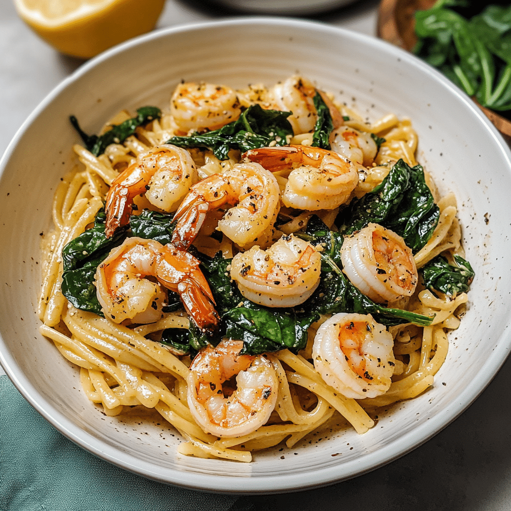 - Packed with Flavor: Garlic, lemon, and spinach combine to create a light yet rich sauce that coats the shrimp and pasta perfectly.