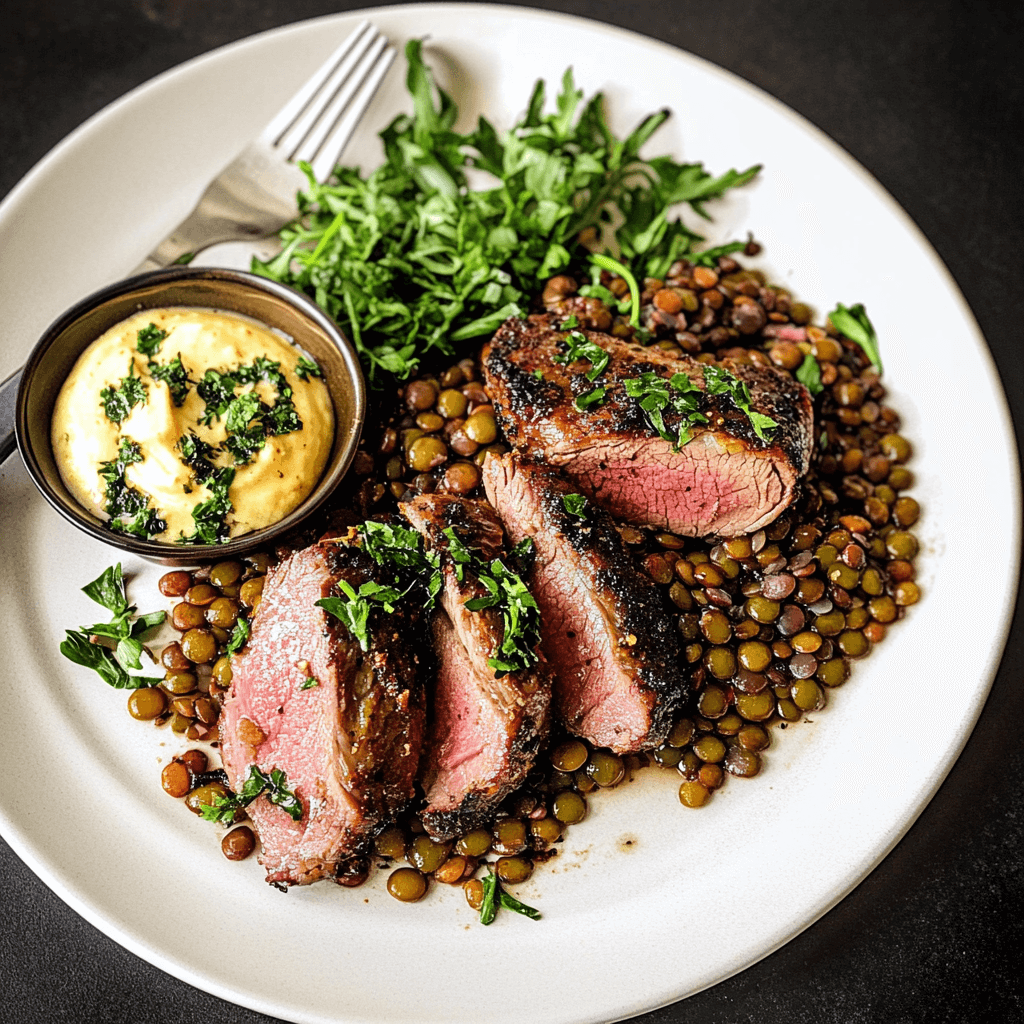 - Rich and Tender Flavor: Grilled lamb is packed with flavor and becomes melt-in-your-mouth tender when cooked just right. The grilling process gives it a smoky depth that pairs perfectly with the earthy, slightly peppery flavor of Puy lentils.