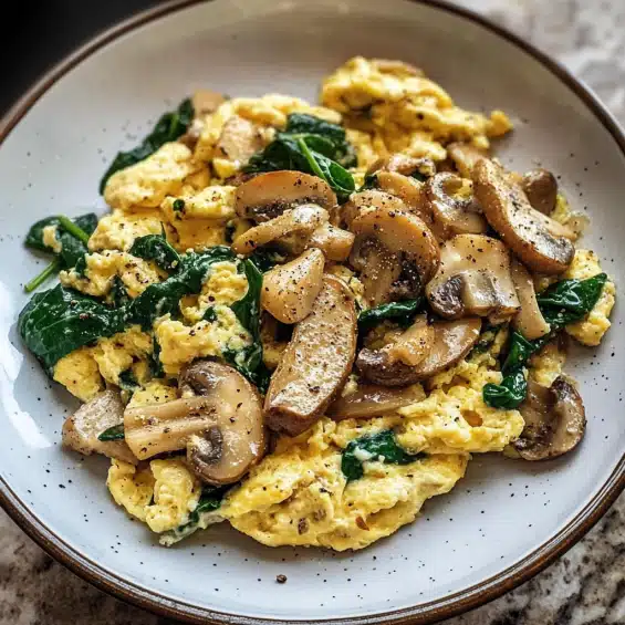 - Caramelized Onion Scrambled Eggs: For extra sweetness, add caramelized onions to the mushrooms and spinach.
