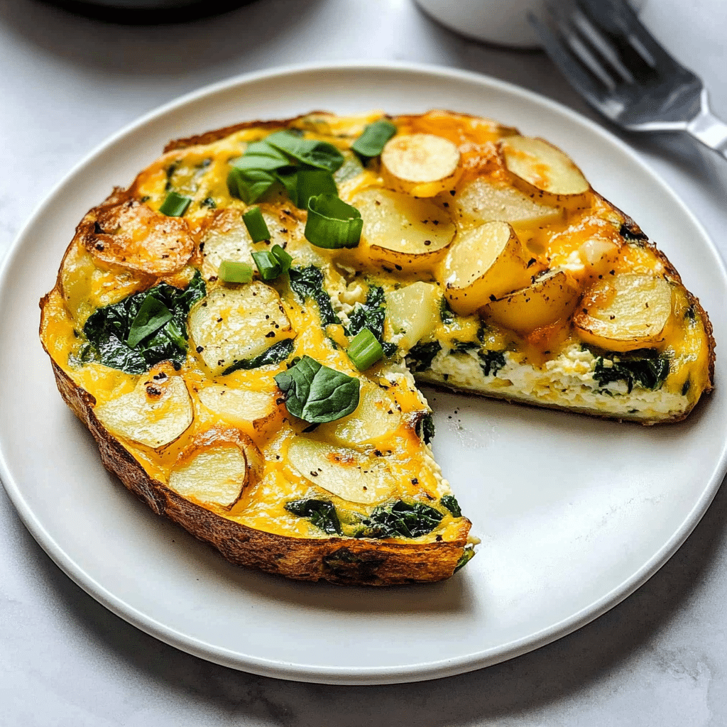 A Potato and Spinach Frittata is a hearty, yet light, dish that combines tender, golden potatoes with fresh spinach in a fluffy, egg-based filling. The potatoes are sautéed until crispy on the edges, adding a satisfying texture, while the spinach brings a burst of color and a mild, earthy flavor. The frittata is seasoned with a blend of herbs and cheeses, creating a comforting and savory dish that’s perfect for breakfast, brunch, or a quick weeknight meal. Easy to make and even easier to enjoy, this frittata is a satisfying, wholesome option for any meal.