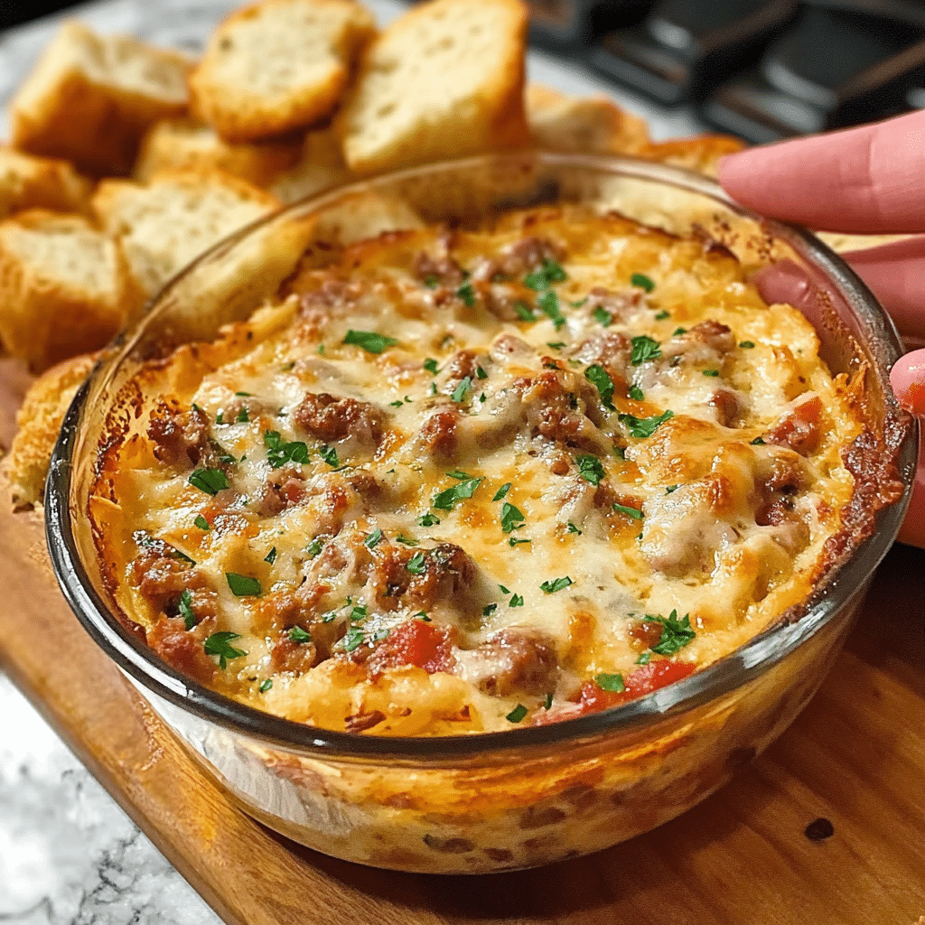 - Sausage and Creamy Alfredo Dip: Mix in a cup of Alfredo sauce for a creamy, pasta-like dip with a bit of sausage spice.