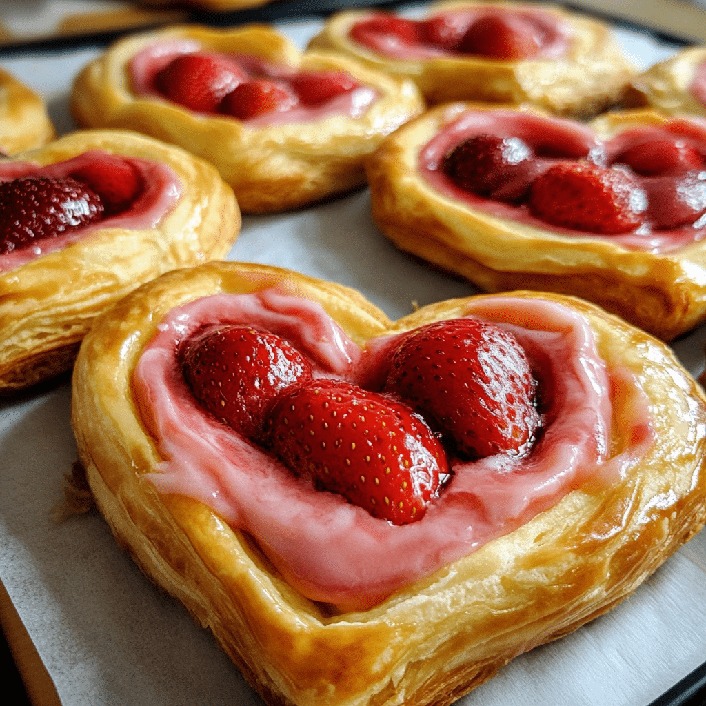 Whether you’re looking for a sweet breakfast pastry or a charming dessert to serve guests, these Strawberry Cream Cheese Heart Danishes are the ideal choice. They are easy to make, full of flavor, and offer a beautiful presentation, especially when shaped into heart forms, making them an excellent treat to show affection to loved ones.