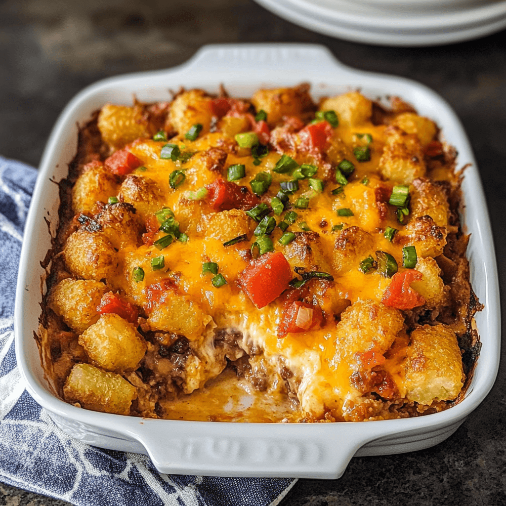 - Bacon and Avocado Tater Tot Casserole: Add crispy bacon and top with fresh avocado slices after baking for a creamy, crunchy combo.